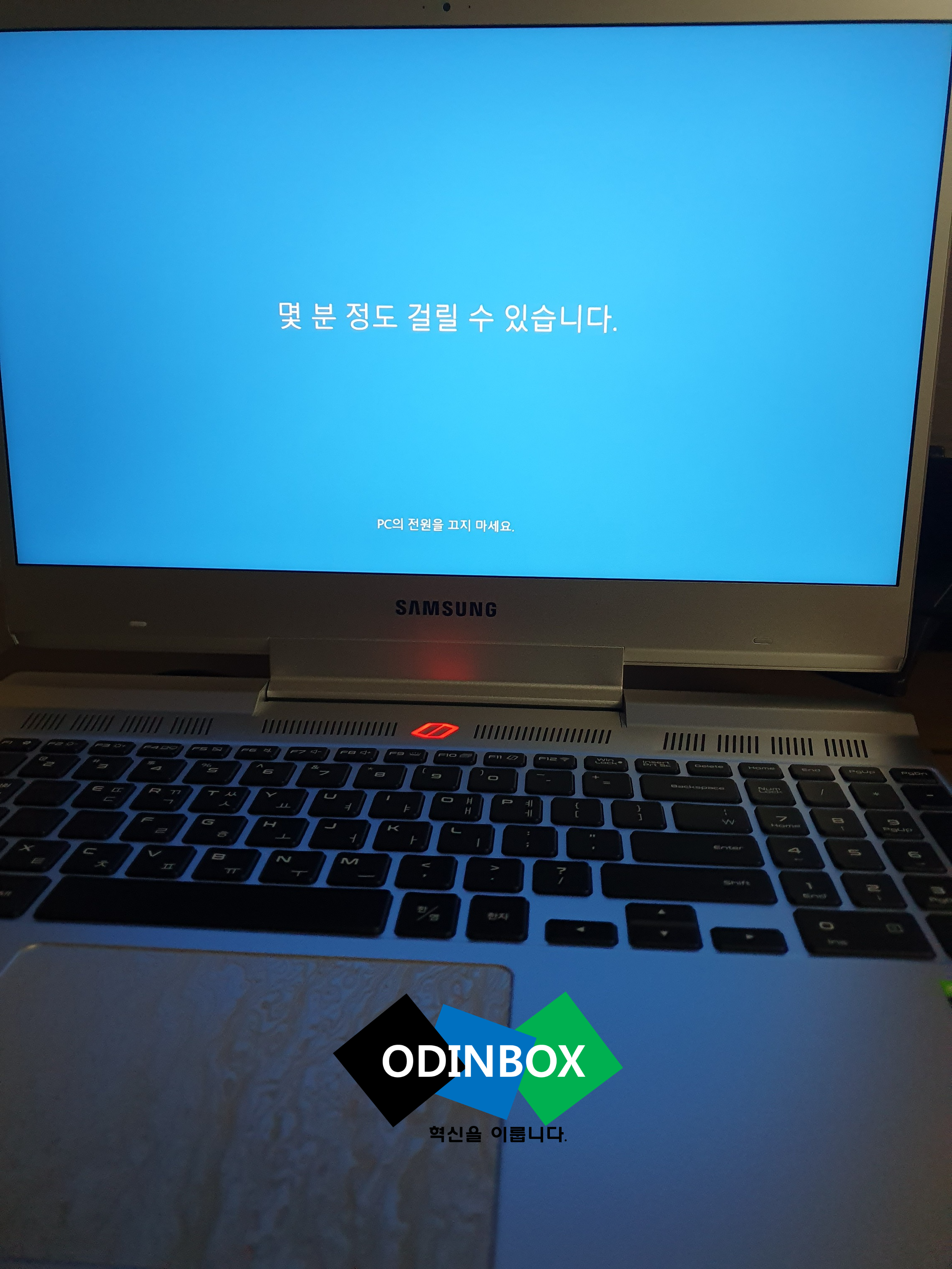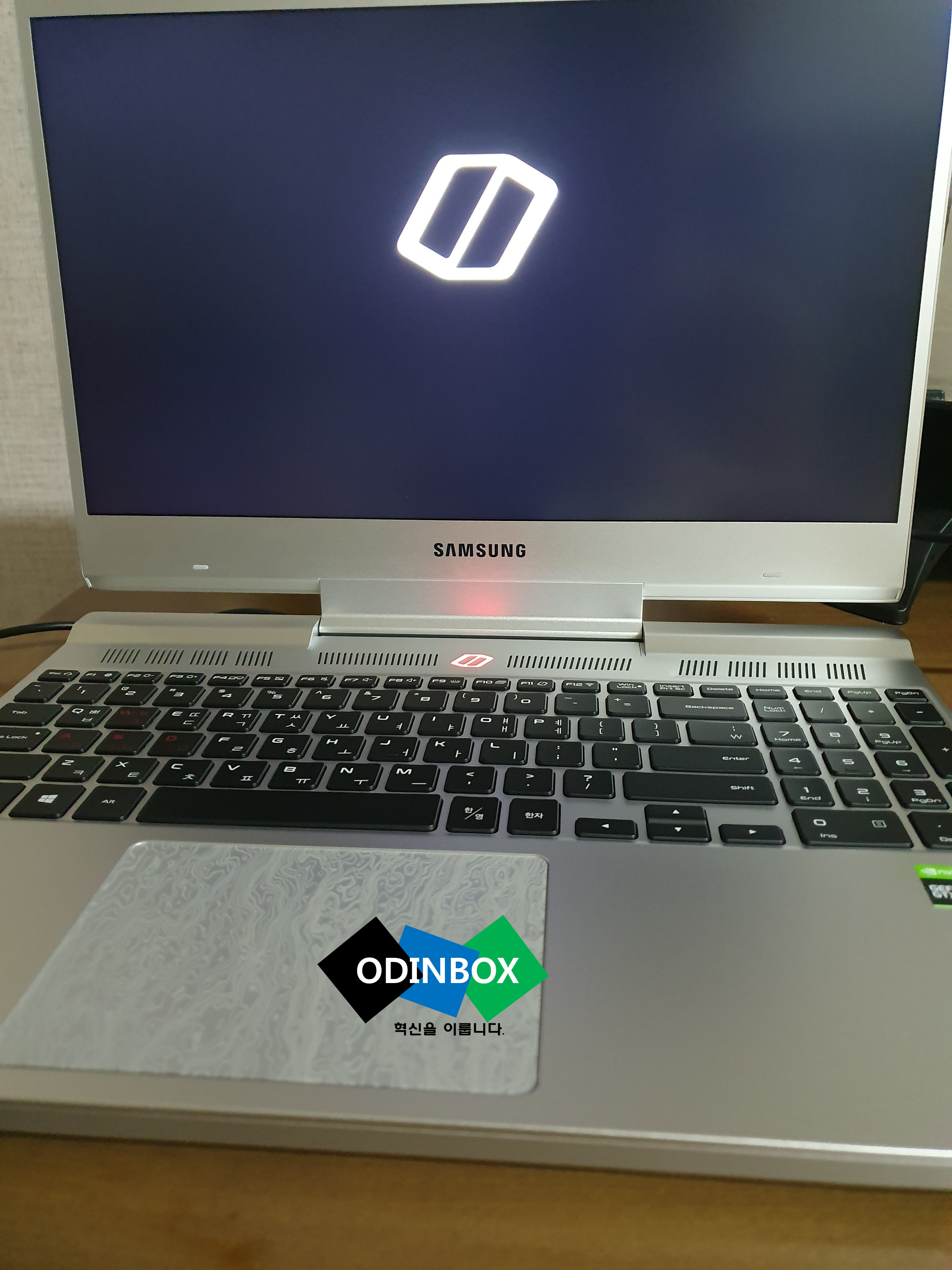 오디세이의 모습입니다. 첫 설치와 함께 윈도우가 정상적으로 바로 설치가 됩니다. 생긴 모습은 사람마다 호불호가 있을 것 같습니다만 저의 경우 마음에 듭니다. 트랙패드의 디자인 또한 밋밋한 모습이 아닌 디자인이 되어 있습니다.