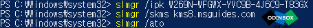 slmgr /ipk 본인의 해당 윈도우 CD Key