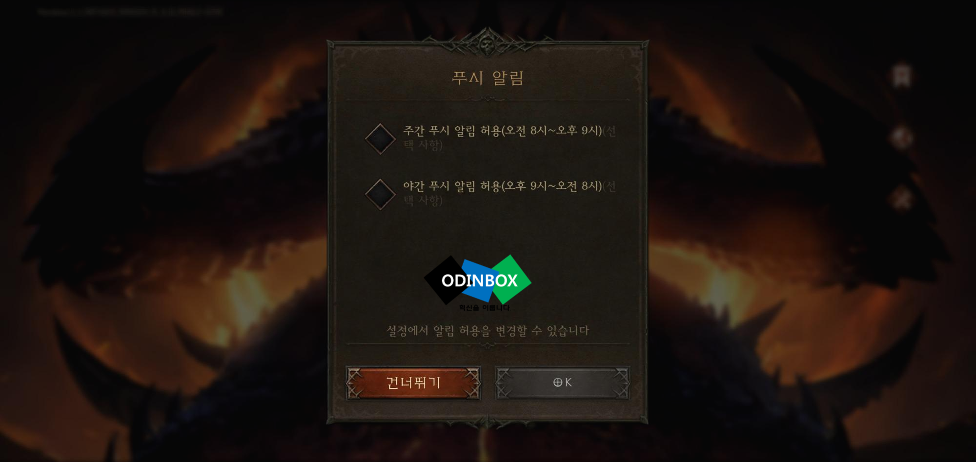 첫 실행화면에 보이는 모습입니다. 블리자드 로고가 뜰 때는 약간의 기대와 함께 오~라는 기분과 함께 넷이즈 로고가 뜨자마자 흐음.....이라는 반응과 함께 바라봅니다. 그리고 블리자드와 넷이즈의 로고가 같이 나오면 수긍 아닌 수긍과 함께 기대가 줄어드는 마법이 생기긴 합니다. 그리고 나오는 알림창과 함께 팝업창들은 역시 모바일이라는 느낌과 함께 디아블로가 모바일로 할 수 있다는 게 기대감?을 가져보고 들어가 보도록 하겠습니다.