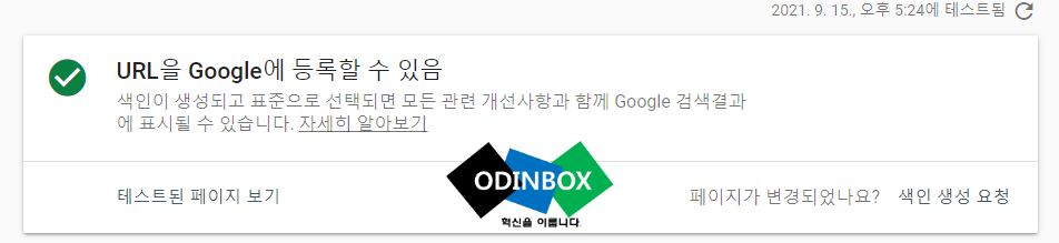 해당 주소가 정상적으로 구글에 등록이 되어있는지 확인을 할 수 있고, 색인 생성 범위와 함께 모바일 사용 편의성을 알 수 있습니다. 그리고 상단 부분 오른쪽에 실제 URL 테스트를 누르면 약 1~2분 정도를 걸리면 테스트가 완료가 됩니다.