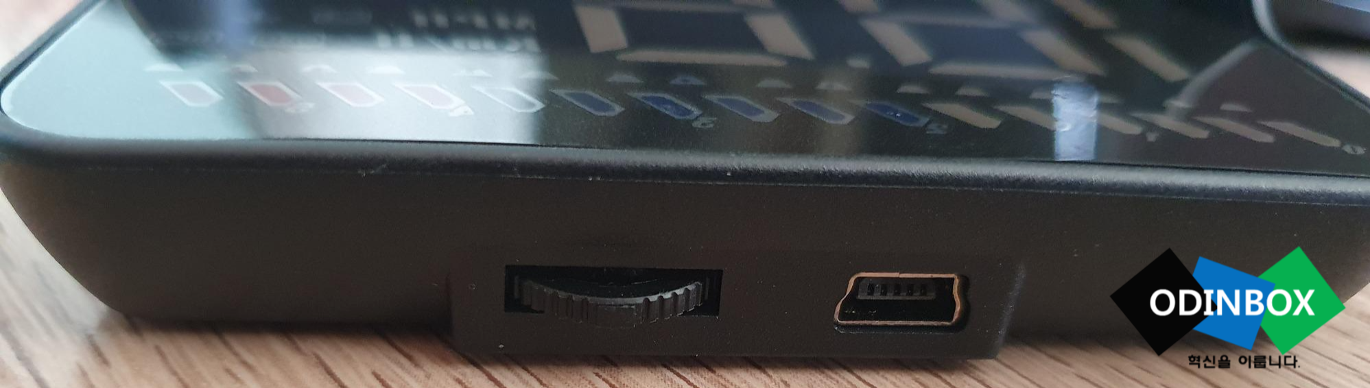 본체의 경우 상단 부분엔 정보를 표시할 수 있도록 만들어져 있습니다. 가격에 비해 마감의 상태는 괜찮아 보입니다. 그리고 옆을 보면 설정을 할 수 있는 다이얼과 선을 연결할 수 있는 포트가 있습니다.
