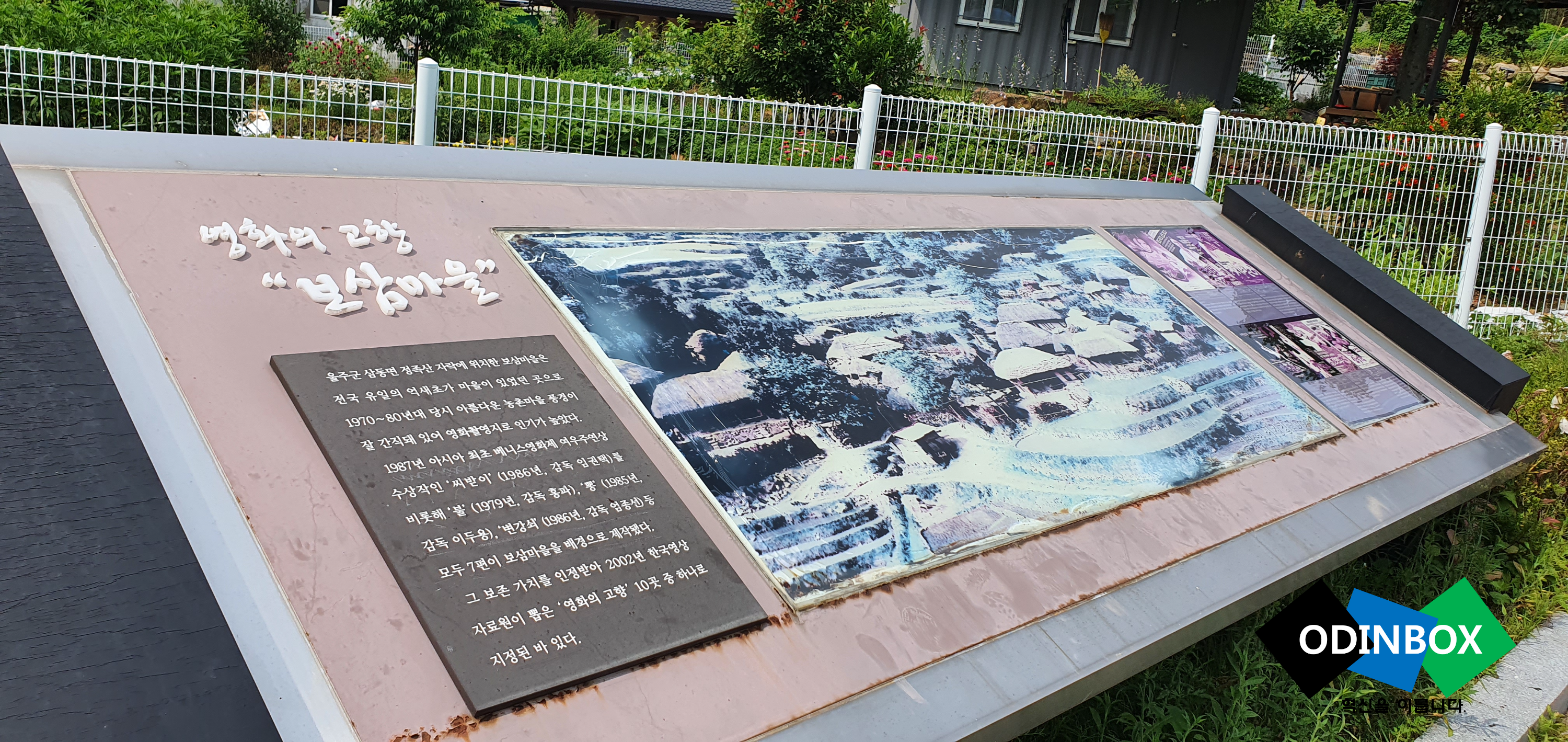 보삼마을에 대한 소개와 함께 보삼마을을 배경으로 촬영된 영화에 대해서 볼 수 있도록 되어 있습니다. 1987년 아시아 최초 베니스영화제 여우주연상 수상작품인 씨받이(1986년, 감독 임권택)를 비롯해 불(1979년, 감독 홍파), 뽕(1985년, 감독 이두용), 변강쇠(1986년, 감독 엄종선), 빨간앵두3(감독 박호태), 감자(1987년, 감독 변장호), 사방지(1988년, 감독 송경식)가 촬영을 했던 곳이기도 합니다. 이렇게 촬영된 영화들과 함께 그 보존 가치를 인정받아 2002년 한국영상자료원이 뽑은 '영화의 고향' 10곳 중 하나로 지정되었다고 합니다.