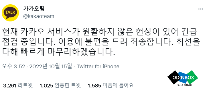 카카오가 사실상 국내 메신저의 독점을 하고 있는 상태인데 이런 사태를 겪으며 라인이나 텔레그램 등 다양한 메신저를 활용도 해야 할 것 같습니다. 제대로 된 대책 수립 없이 결국 주먹구구 복구하고 또 이런 일이 터지고 나면 또 사과와 함께 재발방지대책은 전혀 없이 또 이뤄진다면 결국 이 일은 계속 일어날 수밖에 없는 일이 됩니다. 여러분들도 많은 관심이 필요한 부분입니다 여러분의 의견은 어떠신가요?