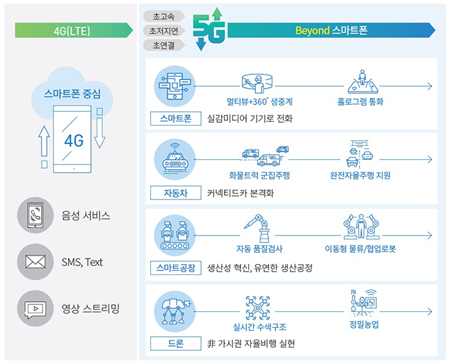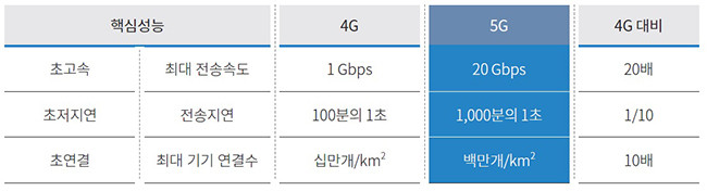 5세대 이동통신의 기술이며 대한민국이 최초로 선보인 기술입니다. 28 GHz를 사용을 하며 획기적인 다운로드 속도와 함께 일관된 연결과 개선된 용량을 제공을 하고 있습니다. 5G의 장점은 4G보다 속도가 빠르기 때문에 자율주행차와 함께 게임 등에서 사용을 할 수 있으며 고속 데이터 연결이 필요한 곳에 적합한 기술입니다. 5G가 필요한 이유는 앞서 이야기했듯이 자율주행차량과 스마트 팩토리, 가상현실 그리고 의료기술에 사용이 되기 위해 빠른 정보 수집과 데이터의 속도가 뒷받침이 되어야 하는데 5G가 바로 이 기술을 위해 뒷받침을 할 수 있습니다. 그러나 꼭 이런 장밋빛 장점만 존재하는 것은 아닙니다. 바로 단점도 분명하게 존재하고 있는데 바로 취약한 보안성입니다. 그리고 대역폭 간섭으로 인하여 혼선이 발생이 된다. 이것은 3.5GHz의 혼간섭 문제이기도 합니다. 그리고 발열의 문제입니다. 5G를 탑재한 기기의 경우 기존 LTE보다 발열이 심하다는 것입니다. 그러나 처음 LTE서비스가 출시가 된 이후 그 당시에도 발열의 문제와 관련한 이슈가 있었지만 시간이 지나 해결이 되었던 문제로 이 문제는 큰 단점은 아닙니다. 그리고 우리가 일상적으로 가장 크게 신경 쓰이는 문제는 바로 요금제입니다. 기존 4G보다 속도가 20배가 빠르다는 마케팅을 하며 비싼 요금제를 했지만 현실성 떨어지는 속도와 함께 배터리 광탈의 문제로 말이 많이 있었습니다.