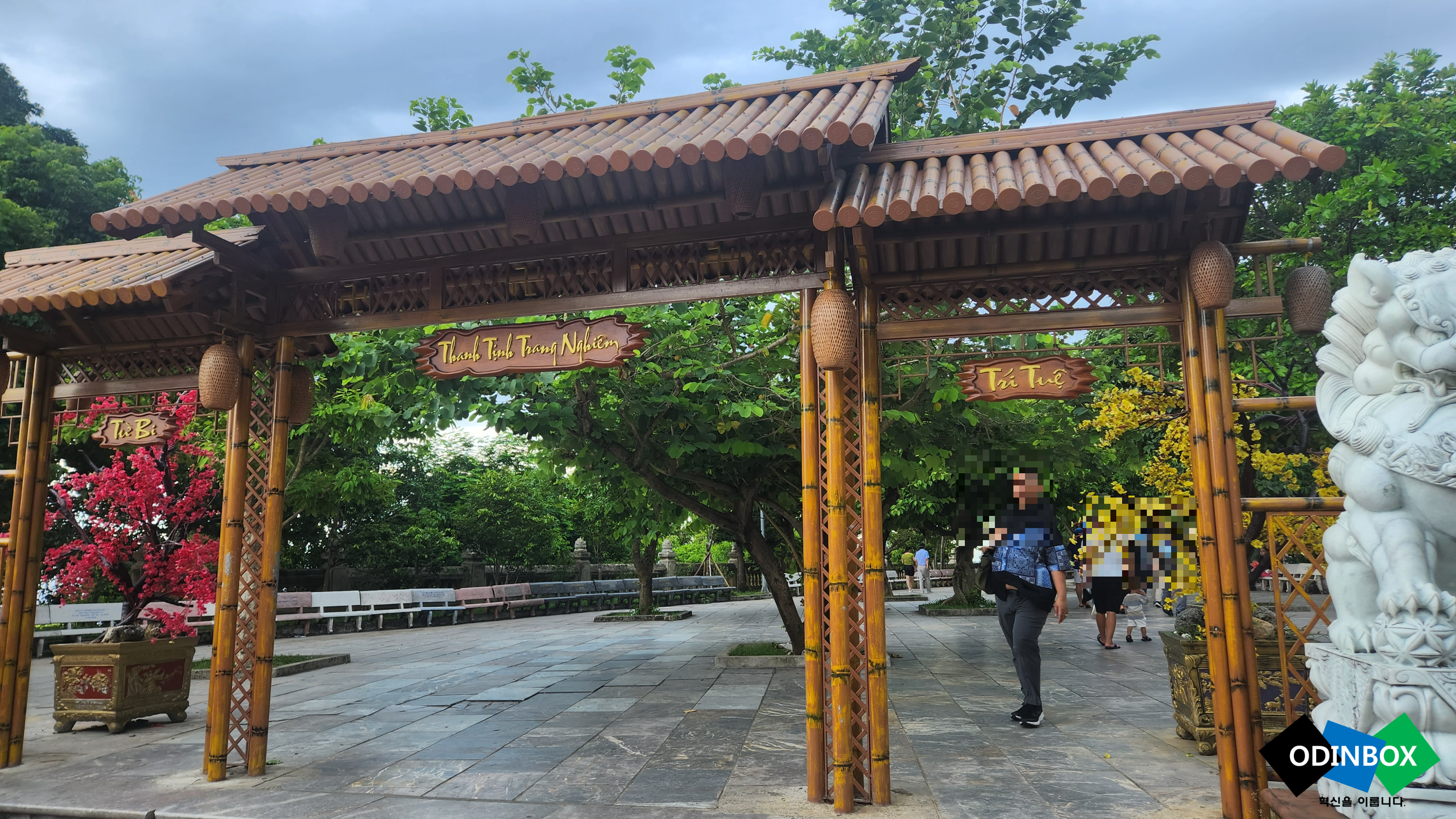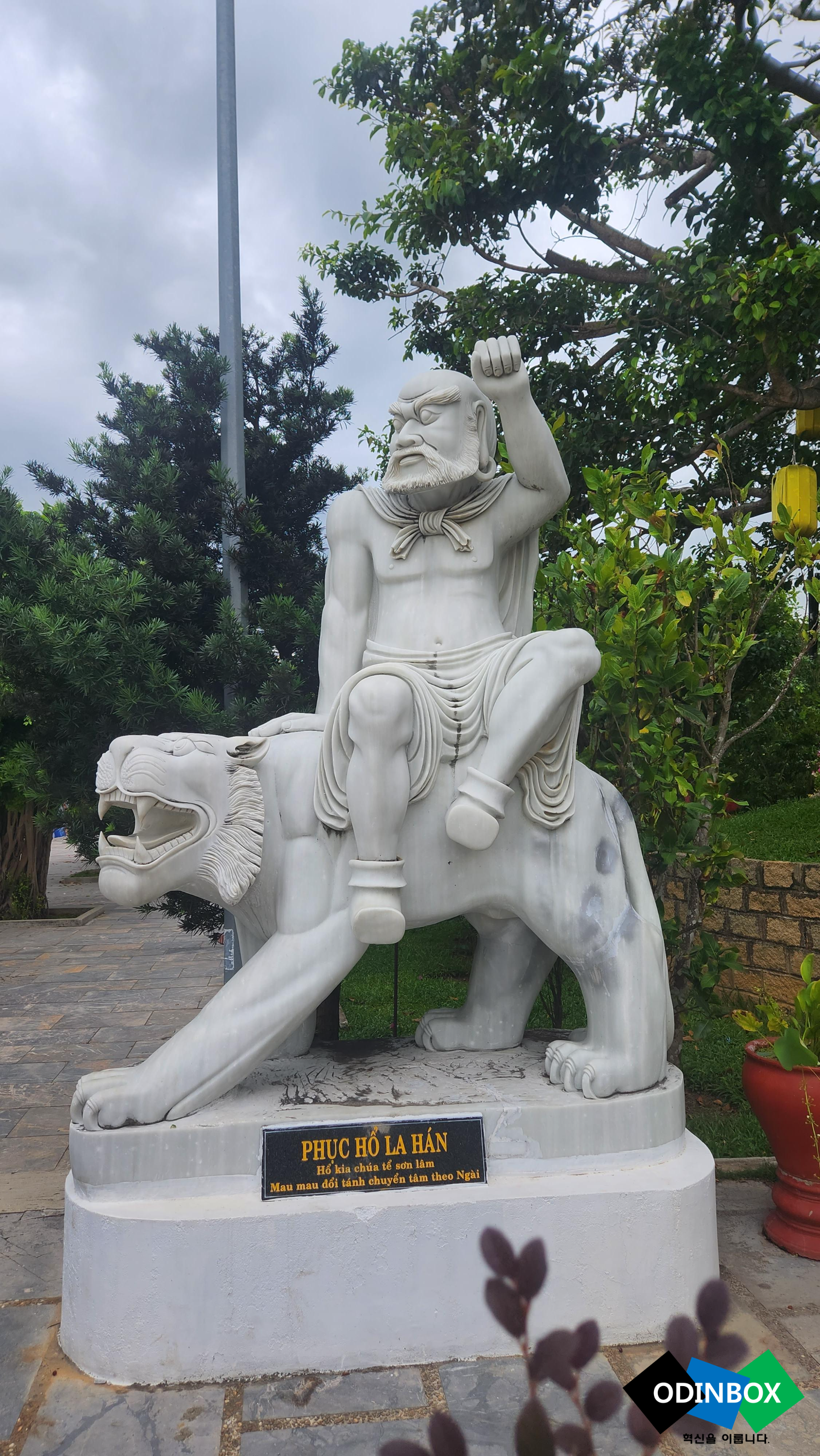 In the case of Marvel Mountain, it is called the English name of Five Mountains. In the case of the name that we know well, it's one of the names that we can get a little bit more commonly known as Ohaengsan Mountain. I arrive by bus and start getting off slowly. As it was my first travel destination, the guide prepared a Vietnamese hat, Nón Lé, and gave it to me. At this time, the sunlight was stronger than I thought and my face was hot, so I don't wear hats often, but I think I wore hats almost all the time at this time. In the case of Ohaengsan Mountain, it is located in the southern part of Da Nang, Vietnam, called Nguyen Xuan County, and the mountain is located along with a hill made of marble and limestone. I arrived at the entrance and went into the cave. If you look at this cave, there is a hole, and it is said that a hole was made in the cave during the Vietnam War due to the shelling of the U.S. military. Also, there were many sculptures made in the cave, so I walked around looking around. I thought of a cool cave, but I felt very humid and hot, and I had to walk carefully because the places I walked were slippery.