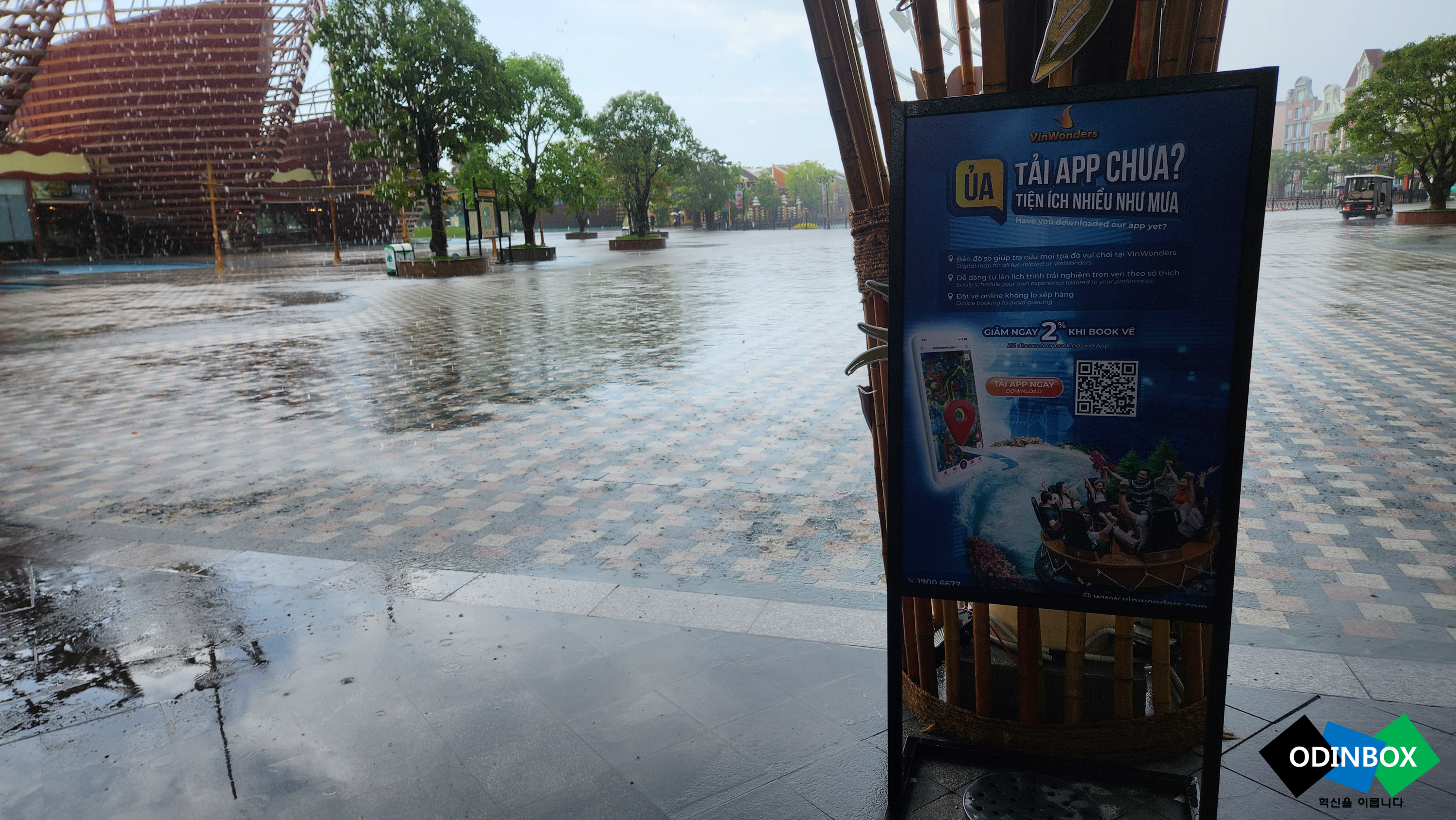 그 후 이대로 다른 곳으로 이동을 하기 아쉬워 씻고 나와 다시 놀이공원을 가게 되어 자이드롭만 타고 다른 곳으로 이동을 하시죠 라는 말을 듣고 이동을 했는데 자이드롭 운행을 하고 탈 차례가 되자 정말 신기하게 비가 미친 듯이 퍼붓기 시작했습니다. 한국에서 봤던 폭우는 폭우가 아닌 것처럼 비가 쏟아지고 곧이어 천둥이 치기 시작했습니다. 아마 이때쯤 한국에서 불미스러운 사고(해수욕장 번개)가 있어 긴장이 되기도 했고 우산이나 이런 것도 못 챙겨서 비를 잠시 피하다 결국 대피를 하여 다시 빈펄랜드 입구를 오게 되었는데 잠시 10분 정도 뒤 다시 아무 일 없듯이 말끔해지면서 햇빛이 나오기 시작했습니다.