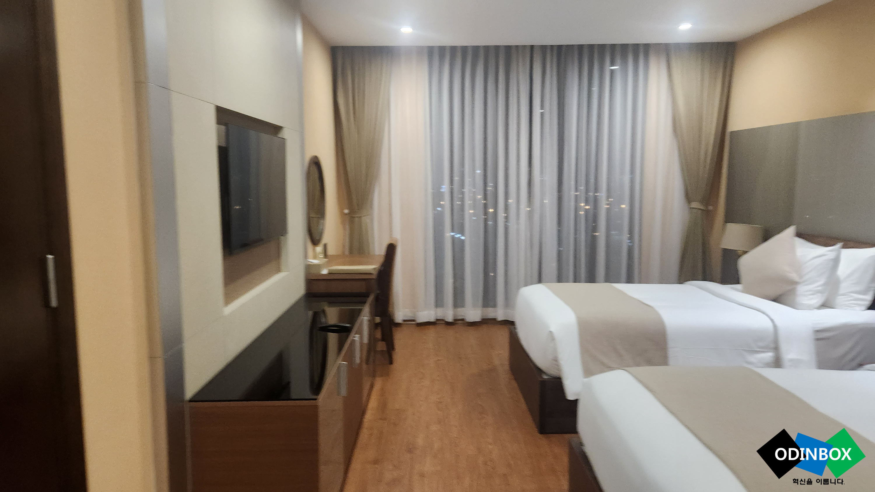 The place I will stay on this trip to Vietnam is Alan's Hotel. When I found out that it was Alan's Hotel before I came on a trip, I searched it and I heard that almost 80% of Koreans were there, so I thought it wouldn't be true, but when I arrived, I looked around, it was full of Koreans. The level I almost felt was like a Haeundae hotel, and the neighborhood was filled with a feeling of humility. But it feels like I'm just sleeping here, so I don't really care about that part, and it feels really neat from the first floor lobby. I've been assigned accommodation, but I've been assigned 21st floor. Strangely enough, Alan's hotel connects some rooms to the next room. The biggest disadvantage of this is that we can hear everything as if we're talking in our room after the sound from the next room. I recommend it if you use the next room with your family, but if it's not, I recommend you to ask in advance and find another room.