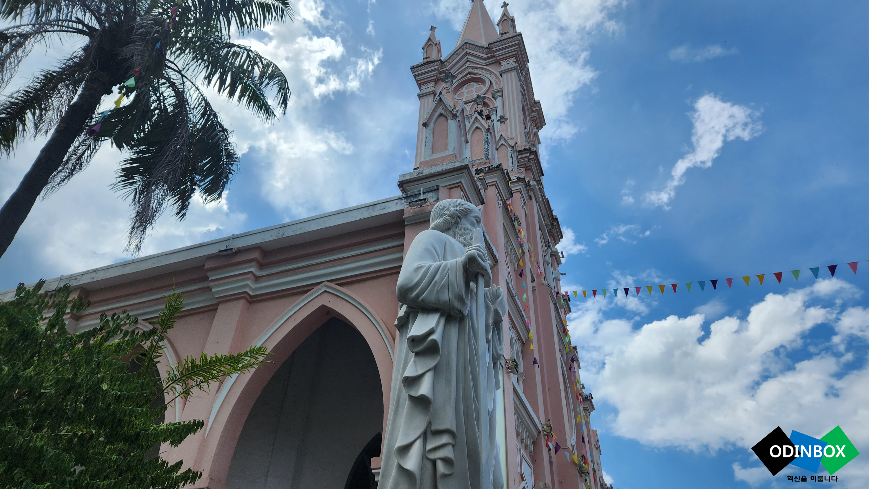 다낭에 위치하고 있는 대성당입니다. 이 곳이 신기한 것은 전형적인 서양의 모습과 함께 핑크색으로 되어진 특이한 성당인데 원래 빨간색으로 하려고 했지만 도료 부족으로 핑크색으로 되었다느 말이 있습니다. 그리고 가장 꼭대기를 보게 되면 닭모양으로 되어져 있습니다. 앞서 이야기 했듯이 베트남은 프랑스 식민지 시절이 있었는데 1925년에 지어진 곳입니다. 그리고 그 옆으로 보게되면 마리아 상과 함께 성수가 흐르고 있습니다. 그리고 성당 옆으로 바티칸 교황청이 실제로 근무를 하고 있다는 이야기를 들었습니다.