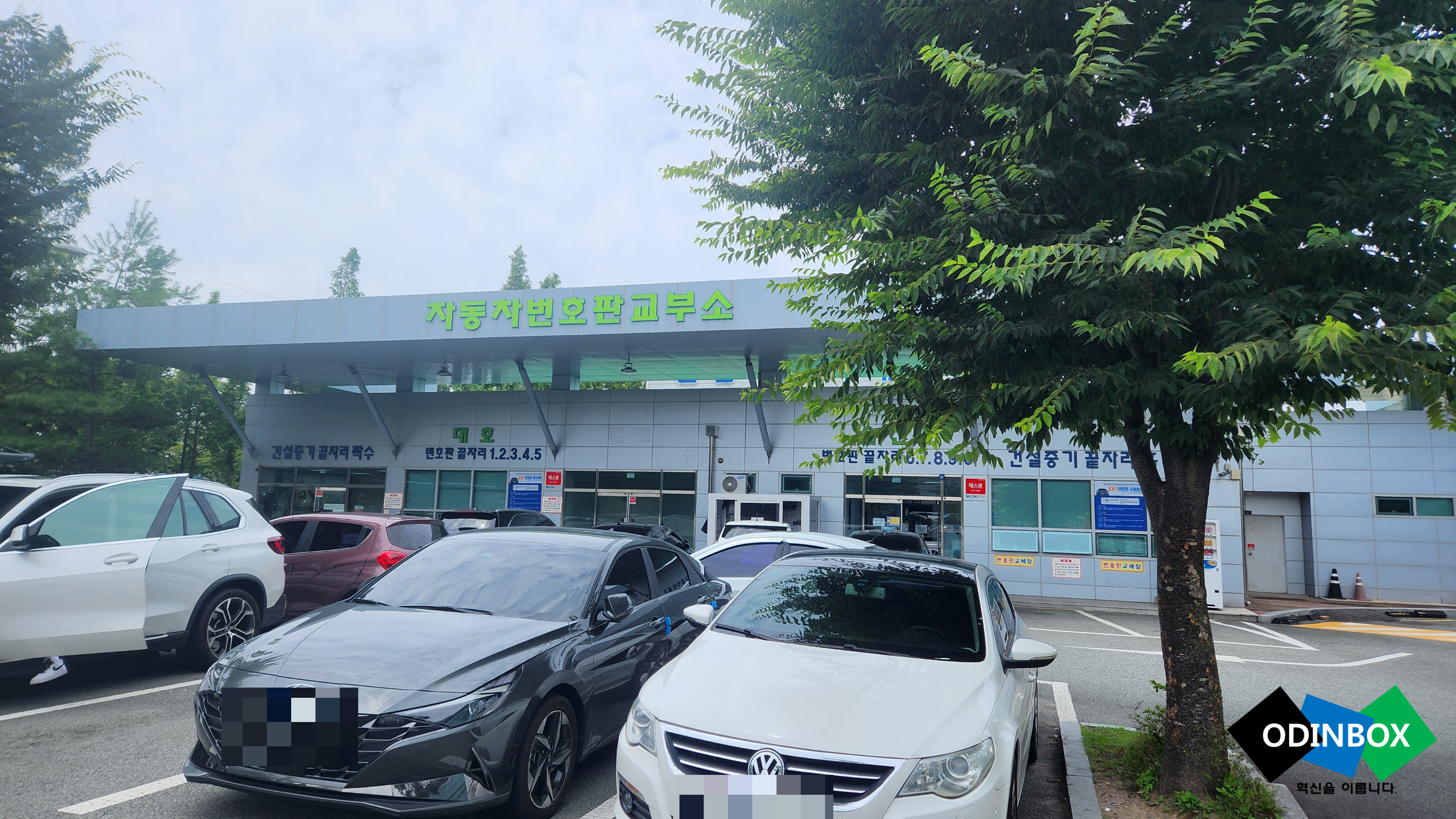 비용을 다 납부를 하게 되면 아까 차량을 주차했던 곳으로 가라고 하고 다시 그쪽으로 가게 되면 번호판 비용을 발급을 하면 재발급된 번호로 된 번호판을 수령할 수 있게 됩니다. 그리고 다시 밖으로 나가게 되면 아까 빛의 속도로 탈거해 주셨던 분들이 아무 말 없이 다시 번호판을 받고 앞/뒤로 번호판을 장착을 하고 또 말없이 사라지십니다. 아마 쿨가이 형님 들인듯합니다.