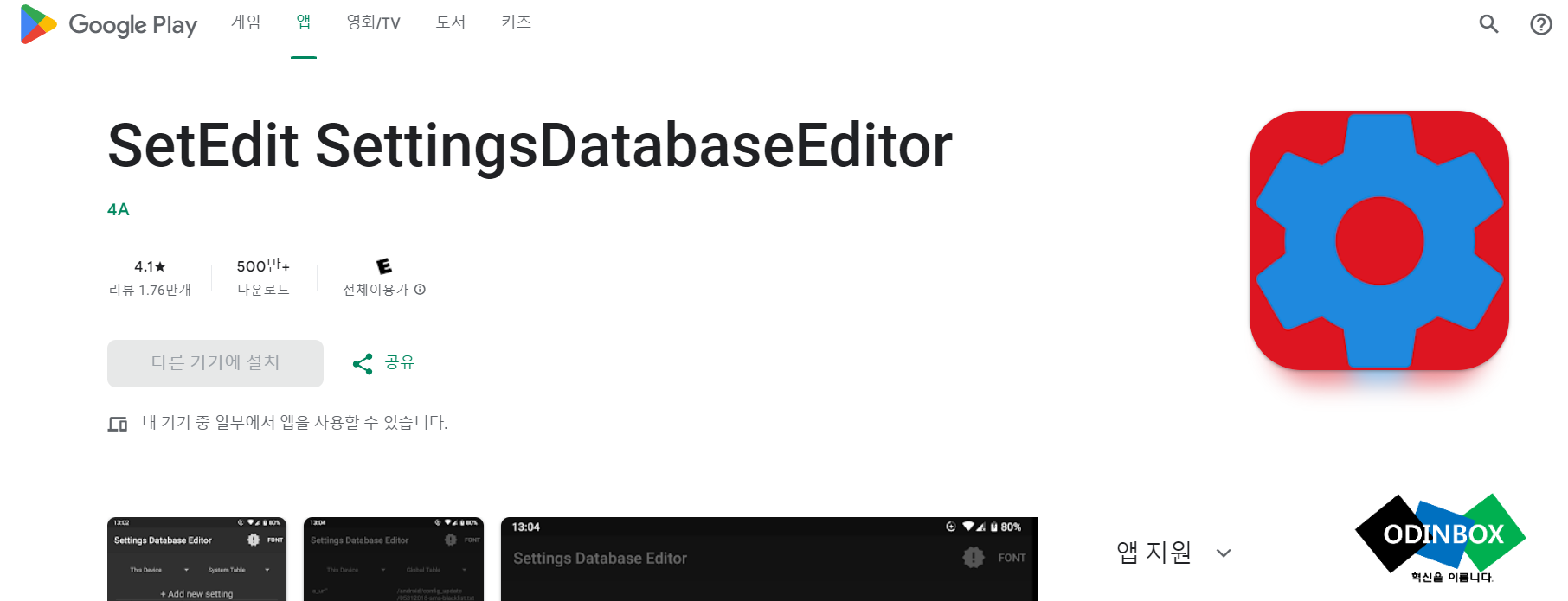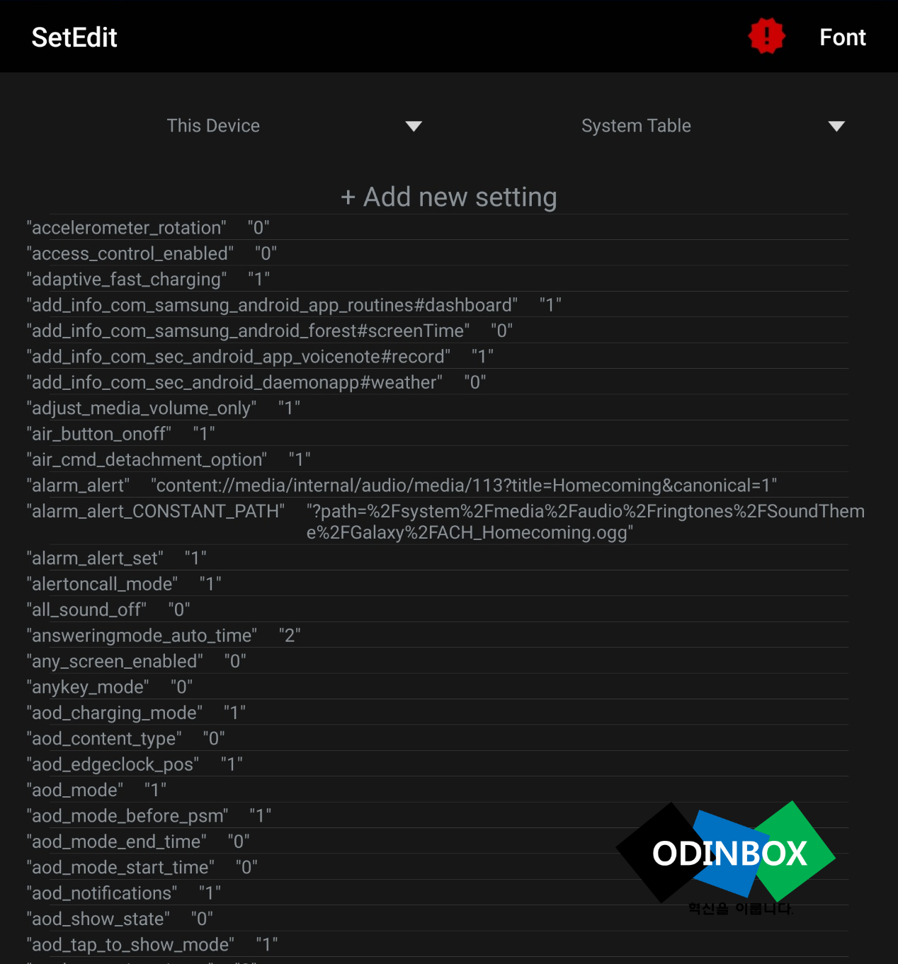 구글 플레이스토어에 SetEdit SettingsDatabaseEditor라는 앱이 검색이 되는데 해당 앱을 설치하시면 됩니다.