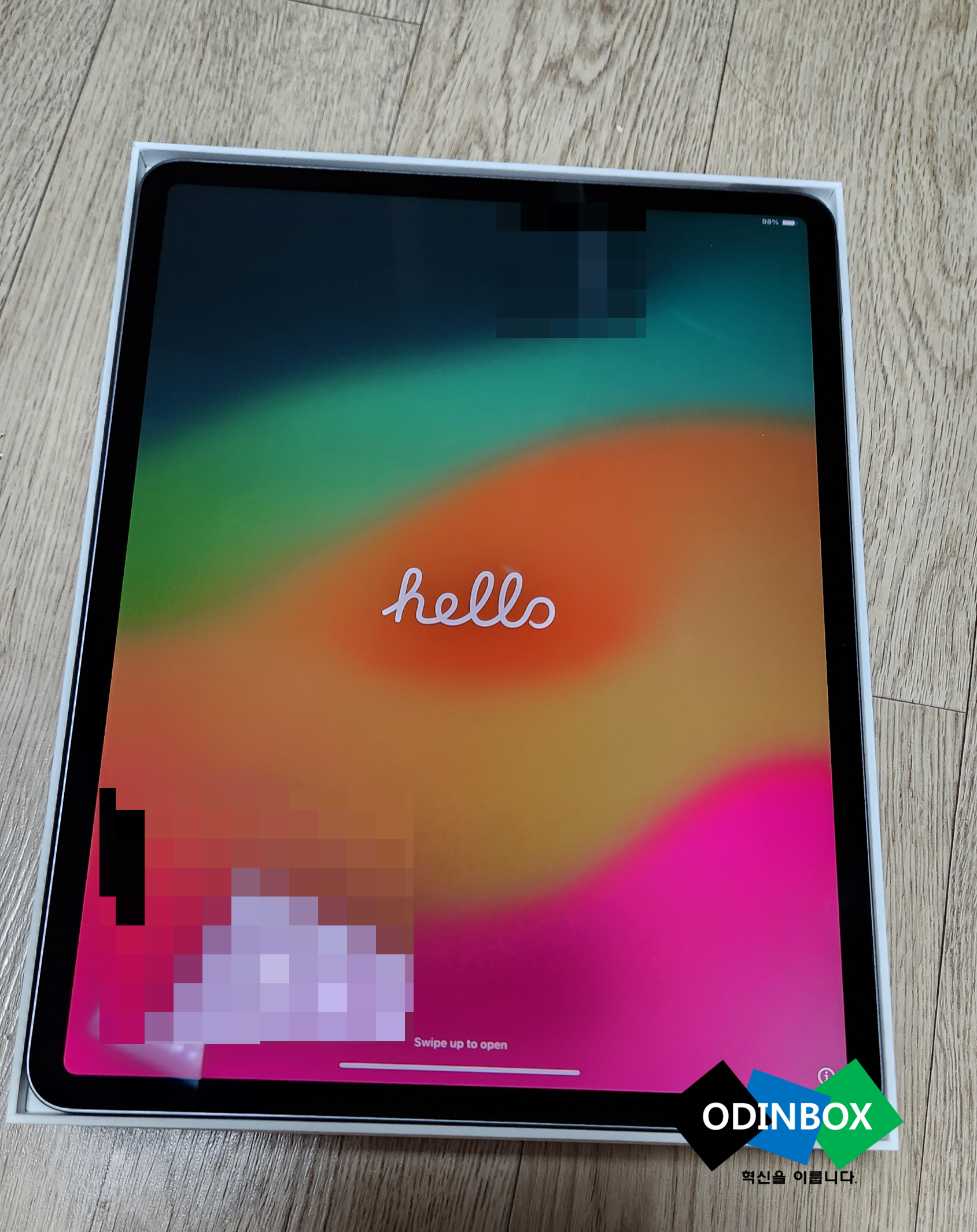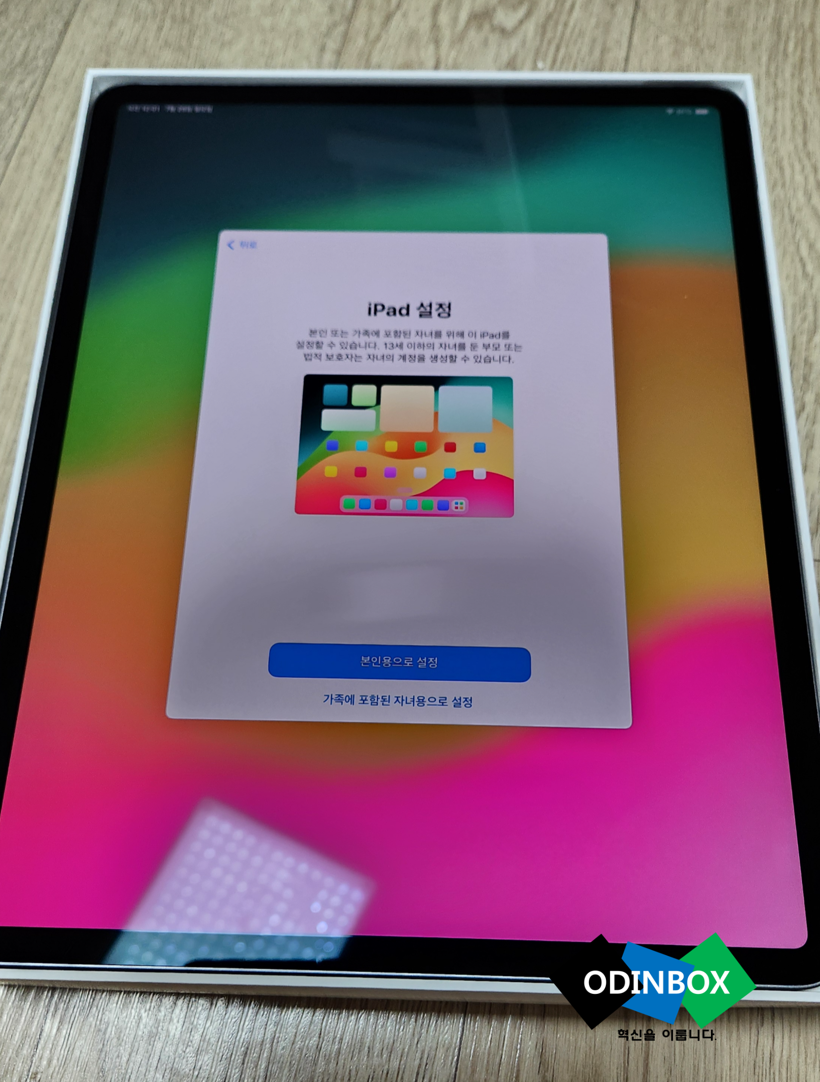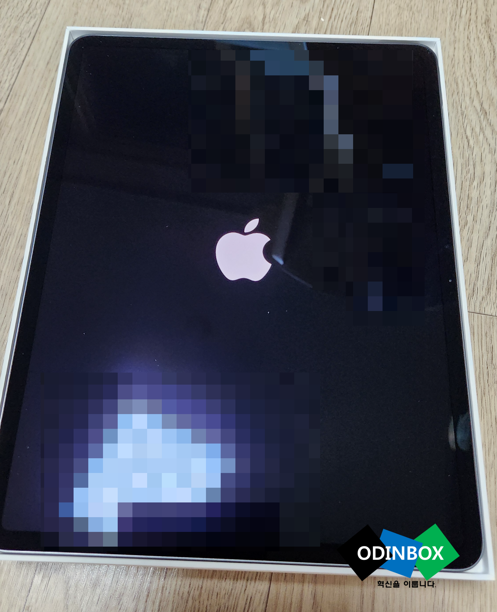 감싸져 있는 제품 종이를 천천히 뜯어 열어봅니다, 이번에 주문한 색상은 스페이스 그레이로 애플의 시그니처 색상 중 하나라고 생각을 합니다, 제일 마음에 드는 색상 중 하나입니다. 그리고 전원을 꾹 눌러 아이패드를 켭니다. 사과로고와 함께 간단하게 설정을 할 수 있는 설정화면이 나오게 됩니다. 맥북에어가 있기 때문에 아이클라우드 계정이 있어 빠르게 로그인을 합니다.