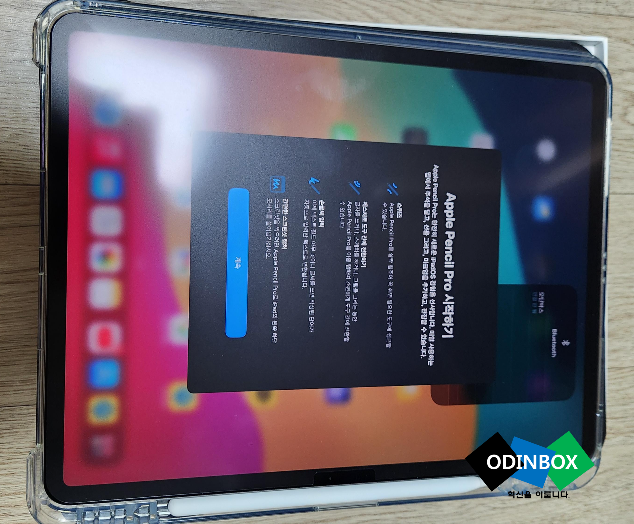 설정이 다 끝난 모습입니다, 이제 같이 주문했던 애플펜슬도 한번 열어볼까요? 이번에 같이 출시한 애플펜슬로 바로 사용을 해보죠