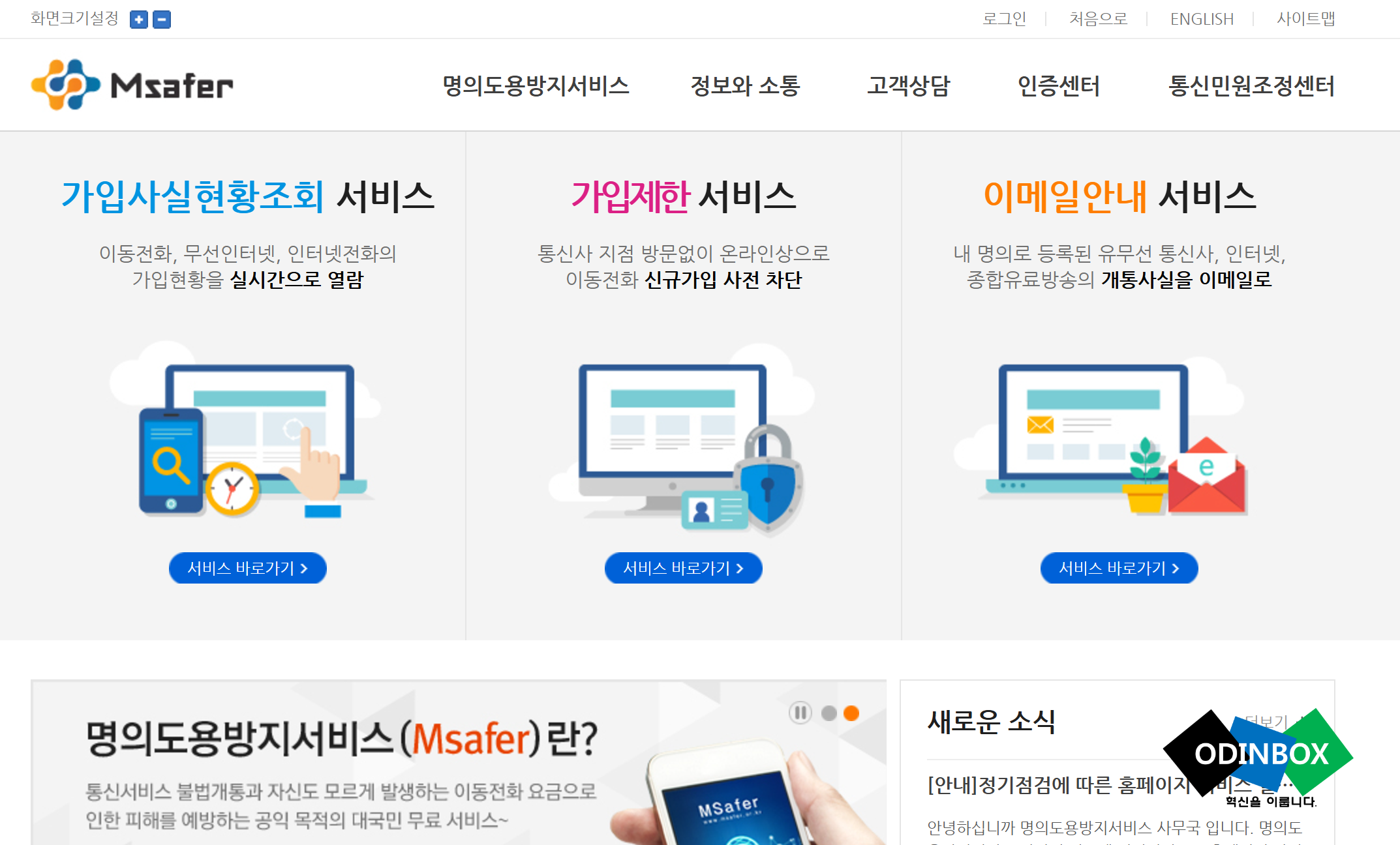 한국정보통신진흥협회에서 운영을 하고 있는 명의도용방지 서비스가 있습니다, 바로 Msafer(엠세이퍼)로 불리고 있는 곳입니다. 해당 서비스는 2005년부터 시작이 되었고 그 당시에는 조그마한 서비스로 시작이 되었습니다. 해당 서비스는 현재 통신서비스(이동전화, 무선인터넷[WiBro], 유선전화, 초고속인터넷, 인터넷전화[VoIP], 유료방송 등)에 가입하거나 명의변경을 통해 양도를 받을 때 그 사실을 본인 명의로 사용하고 있는 이동전화 회선을 통해 알려주는 서비스라고 생각을 하시면 됩니다.