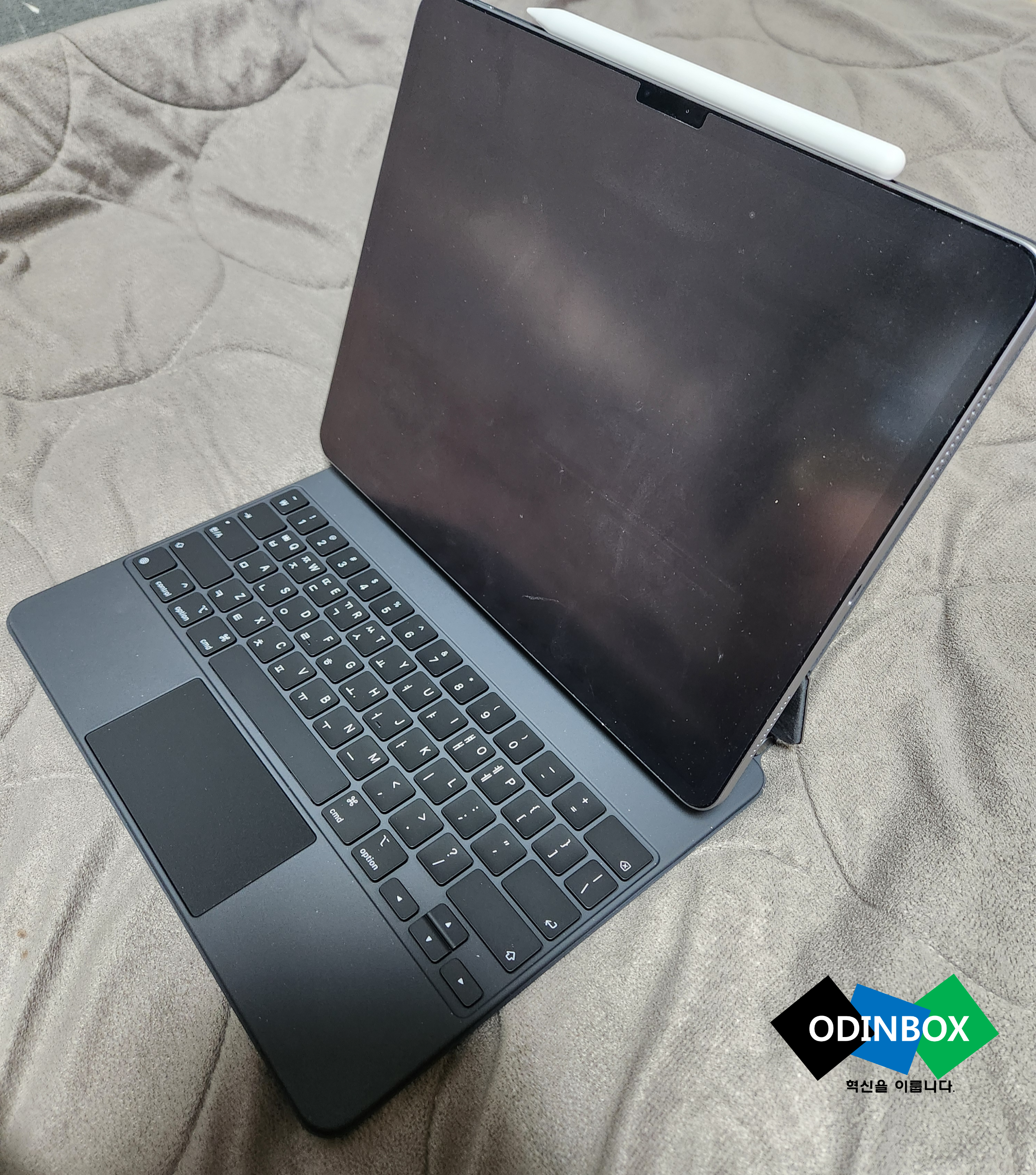 무게 : 아이패드와 매직키보드를 합치면 약 1kg 이상으로 묵직하게 느껴집니다. 휴대성으로 항상 들고 다닐 때 생각보다 불편하다고 느낄 수 있는 무게입니다.