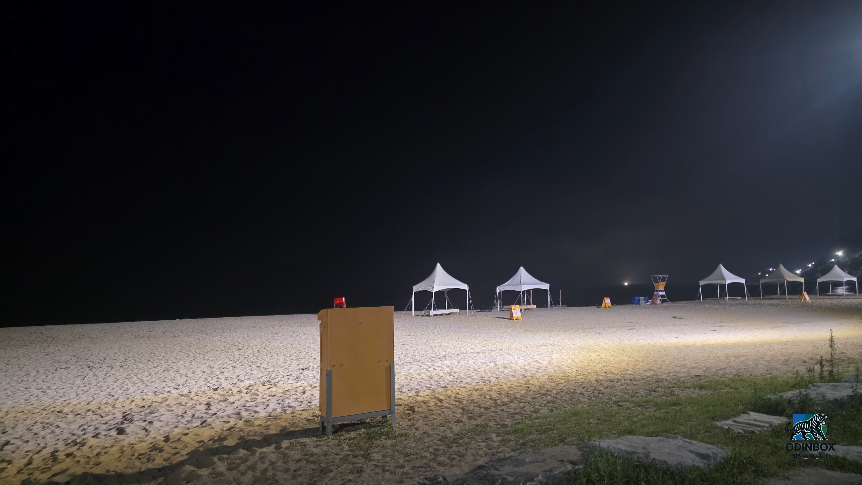 새벽 0시쯤 되자 차 안에서 슬슬 졸음이 피어났습니다. 창문을 열어 시원한 바람을 쐬고(사실 여름이라 그리 시원하진 않았습니다.) 음악 소리도 높여 보았지만 한계가 왔습니다. 그래도 바깥바람을 적당히 느끼면서 오니 새벽 2시경 명파해변에 도착을 했습니다. 이곳은 대한민국 동해안 가장 북쪽에 위치한 해수욕장입니다. DMZ에 매우 가까운 탓에 해변 가장자리에 철조망이 둘러 쳐져 있고 군부대의 출입 통제도 이루어지는 곳입니다. 덕분에 이곳은 일반적인 해수욕장이라기보단 캠핑장으로 더 알려져 있습니다. 저 역시 도착하니 백사장 앞쪽에 캠핑 사이트와 관리소 등이 눈에 띄었고 바닷가로 나가지 못하도록 울타리가 쳐져 있었습니다. 깊은 밤이라 해변 출입이 통제된 터라 파도 소리를 멀찍이 들으며 휴식을 취할 수밖에 없었습니다. 비록 모래사장을 직접 밟아보지는 못했지만 뒤편으로 보이는 에메랄드빛 동해 바다의 고요한 밤하늘의 별들은 충분히 아름다웠습니다. 적막한 해변에 서서 북쪽을 바라보니 불과 수 km 너머에 금강산과 북한 땅이 있다는 사실이 실감 나 묘한 기분이 들었습니다.