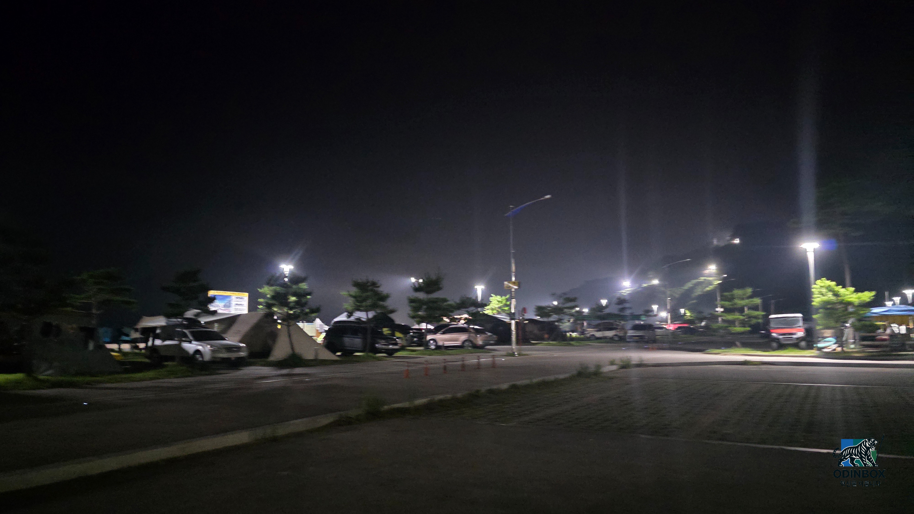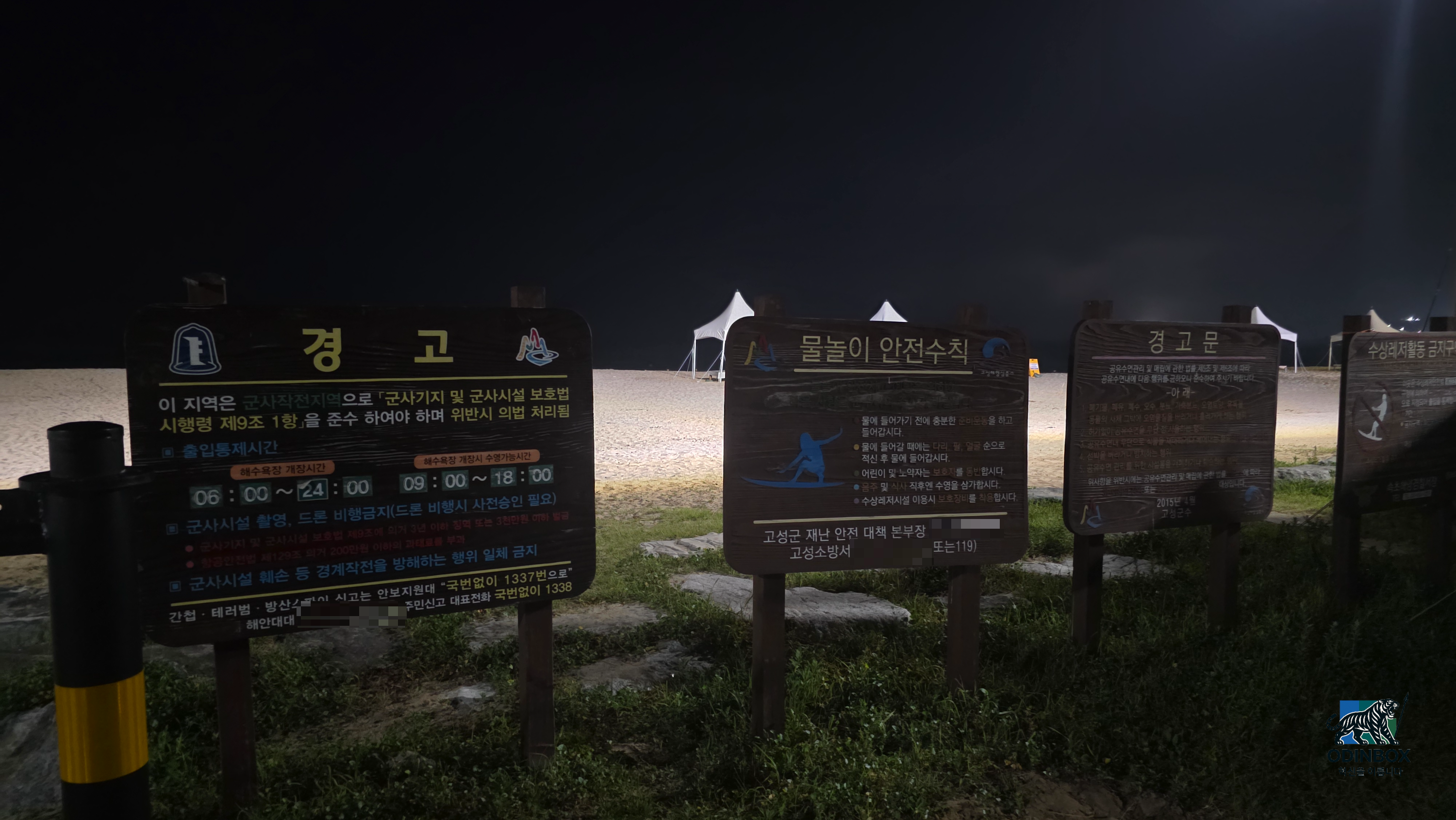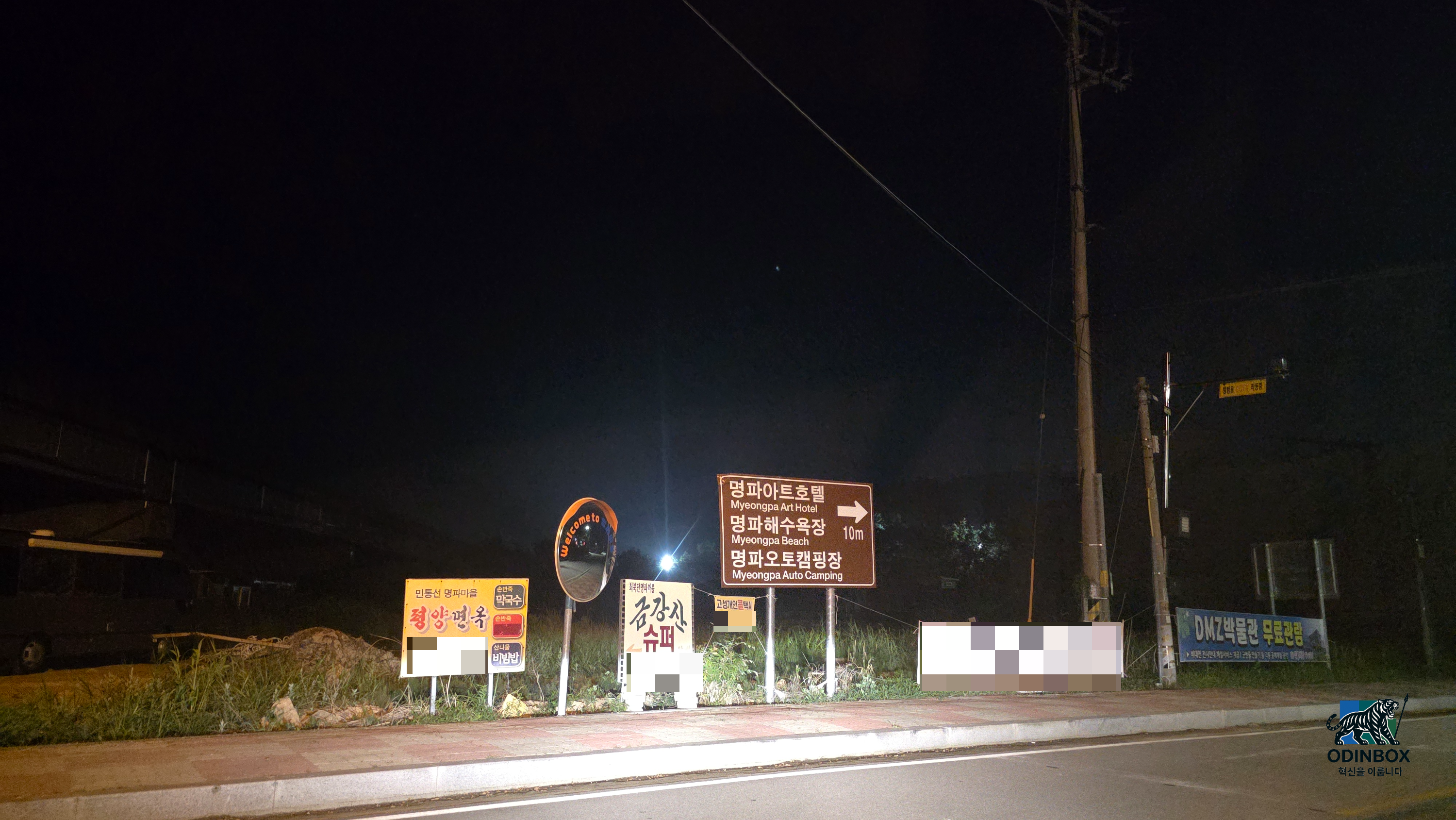 새벽 0시쯤 되자 차 안에서 슬슬 졸음이 피어났습니다. 창문을 열어 시원한 바람을 쐬고(사실 여름이라 그리 시원하진 않았습니다.) 음악 소리도 높여 보았지만 한계가 왔습니다. 그래도 바깥바람을 적당히 느끼면서 오니 새벽 2시경 명파해변에 도착을 했습니다. 이곳은 대한민국 동해안 가장 북쪽에 위치한 해수욕장입니다. DMZ에 매우 가까운 탓에 해변 가장자리에 철조망이 둘러 쳐져 있고 군부대의 출입 통제도 이루어지는 곳입니다. 덕분에 이곳은 일반적인 해수욕장이라기보단 캠핑장으로 더 알려져 있습니다. 저 역시 도착하니 백사장 앞쪽에 캠핑 사이트와 관리소 등이 눈에 띄었고 바닷가로 나가지 못하도록 울타리가 쳐져 있었습니다. 깊은 밤이라 해변 출입이 통제된 터라 파도 소리를 멀찍이 들으며 휴식을 취할 수밖에 없었습니다. 비록 모래사장을 직접 밟아보지는 못했지만 뒤편으로 보이는 에메랄드빛 동해 바다의 고요한 밤하늘의 별들은 충분히 아름다웠습니다. 적막한 해변에 서서 북쪽을 바라보니 불과 수 km 너머에 금강산과 북한 땅이 있다는 사실이 실감 나 묘한 기분이 들었습니다.