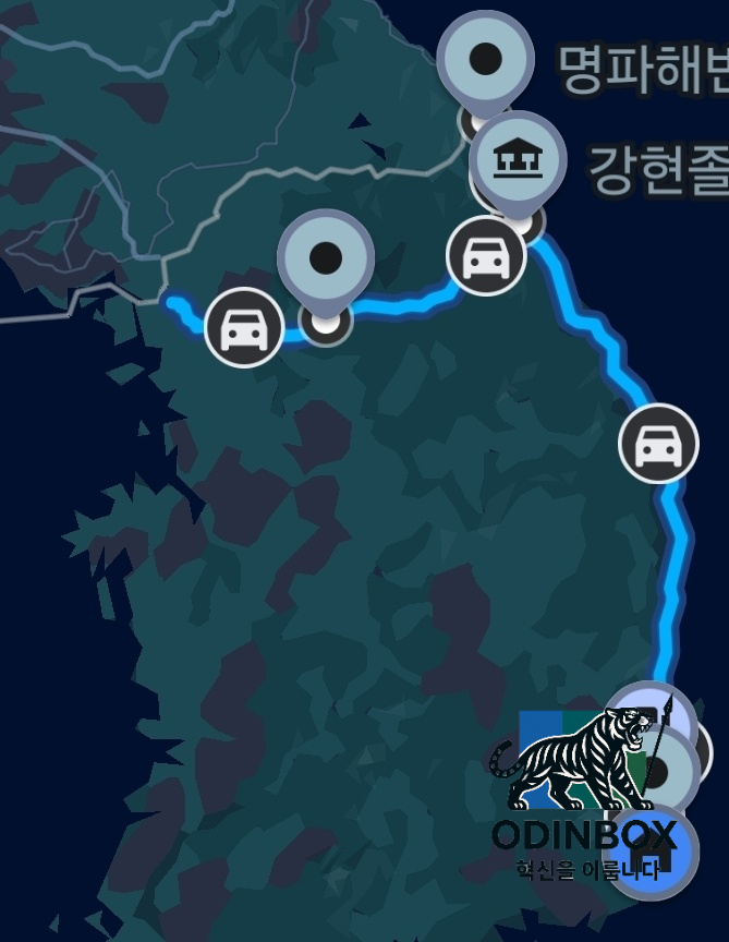 투어를 마치고 시계를 보니 어느덧 저녁 무렵이 되었지만 저는 곧바로 강원도 고성으로 향하기로 했습니다. 하루를 그냥 보내기 아쉬워 휴식을 포기하고 야간 드라이브에 나선 겁니다. 파주에서 동해안 최북단의 고성까지는 지도상 거리만 약 240km이며 운전으로 3~4시간 정도는 걸리는 여정입니다. 서쪽 끝에서 동쪽 끝을 가로지르는 길 혼자 운전하며 창밖으로 어두워진 풍경과 드문드문 보이는 불빛을 벗 삼아 달렸습니다. 피로가 몰려왔지만 이왕 나온 길 가볼 수 있을 때까지 가보고 싶었습니다.