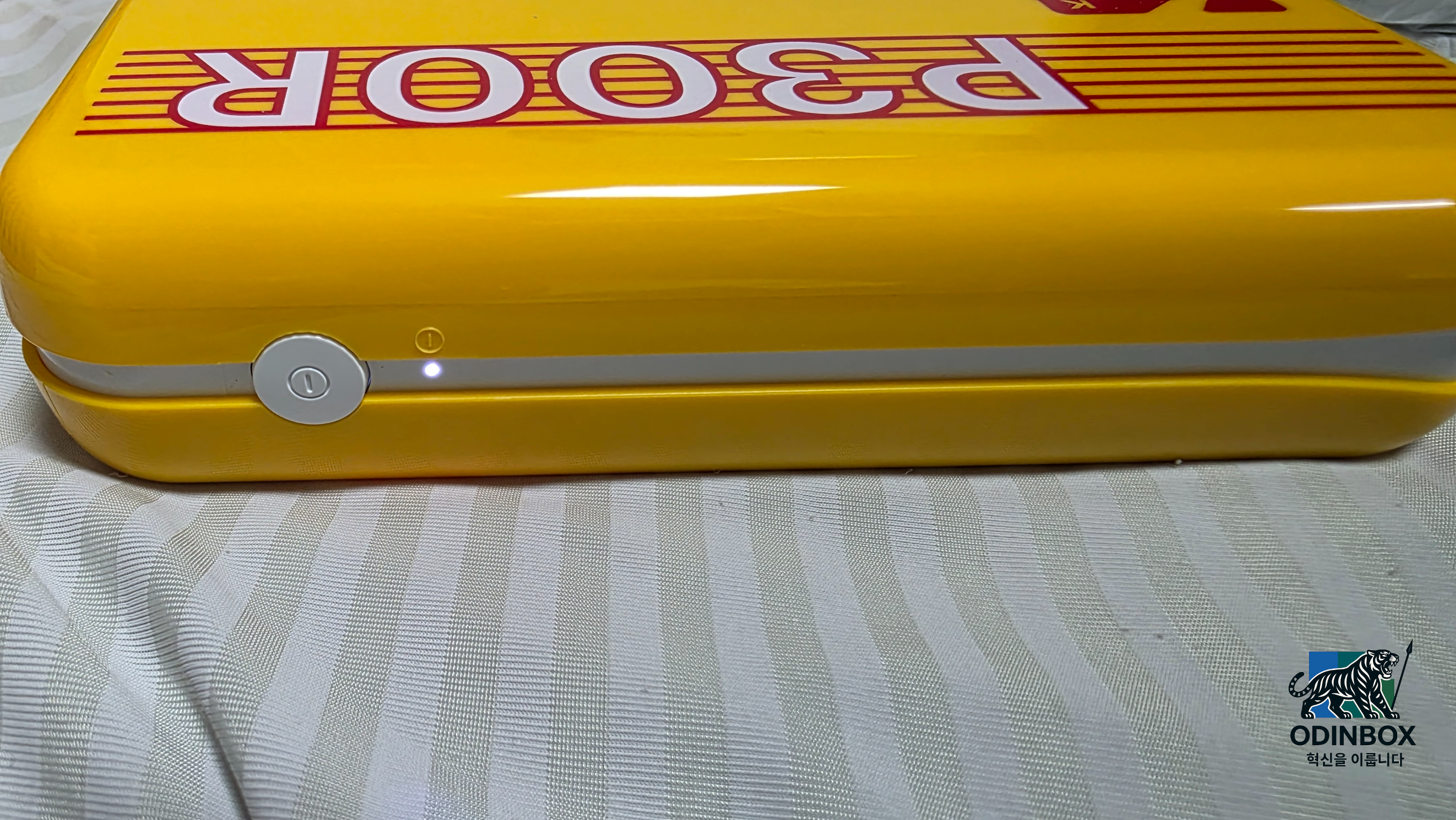 P300R 본체는 화이트, 옐로우, 블랙 총 세가지 색상으로 출시되며 저는 클래식한 옐로우 색상을 선택을 했습니다. 크기는 약 134 104 x 30mm, 무게는 370g으로 한 손에 잡히는 크기라 가방이나 파우치에 쏙 들어갑니다. 상단엔 전원 버튼과 상태 LED가 측면에 충전 포트와 카트리지 삽입구가 있어 조작이 간단합니다. 내부에는 충전 가능한 리튬이온배터리가 탑재되어 있으며 90분 충전으로 약 20장 사진을 출력할 수 있다는 점도 매력적입니다.