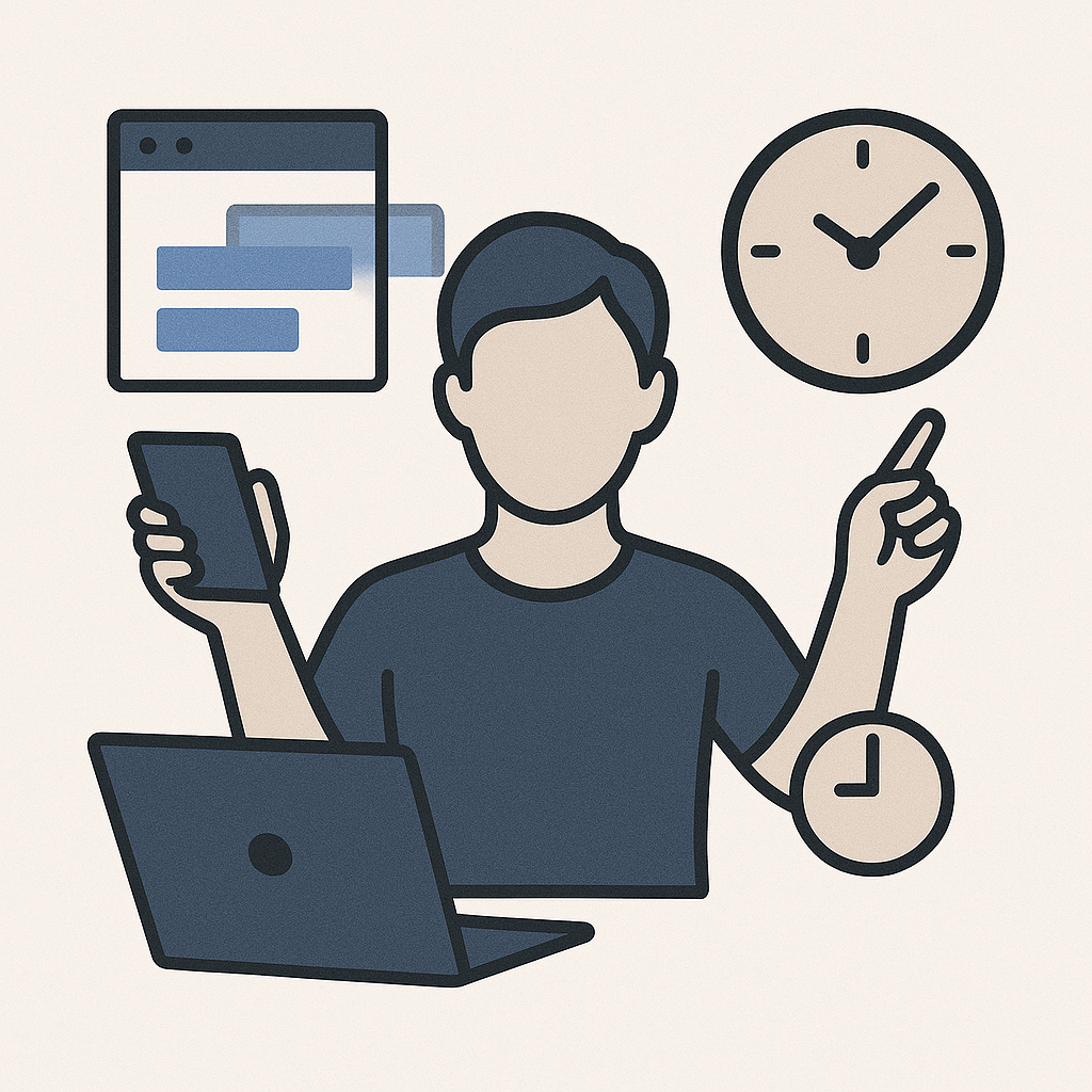 업무 효율을 높이려고 여러 가지 일을 동시에 처리(멀티태스킹)하는 사람들이 많지만, 아이러니하게도 이는 생산성을 떨어뜨리는 주범입니다. 한 연구에 따르면 멀티태스킹을 많이 하는 사람들은 한 번에 하나씩 차례로 처리하는 사람들보다 업무 효율이 낮고, 일단 작업 흐름이 끊기면 다시 집중력을 되찾는 데 평균 23분 15초가 걸린다고 합니다. 결국 동시에 여러 일을 해내려는 욕심이 오히려 시간을 낭비시키고 두뇌의 에너지만 소모하는 셈입니다. 필자 역시 한때는 IDE로 코드를 작성하면서 옆 화면으로 이메일 알림을 수시로 확인하고, 전화 통화까지 하며 다중작업을 자처했던 적이 있습니다. 그러나 결과를 돌이켜보면 그런 날은 잦은 문맥 전환 때문에 정말 중요한 코드 한 줄 제대로 작성하지 못한 채 피로감만 누적되곤 했습니다.